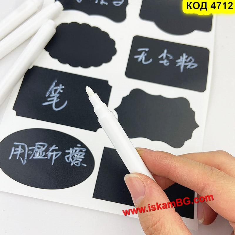 Комплектът самозалепващи етикети „Черна Дъска“ е идеалното решение за стилна и гъвкава организация на вашия дом. Тези етикети за буркани за многократна употреба ви позволяват лесно да надписвате и променяте съдържанието на вашите контейнери с помощта на течен тебешир или обикновен тебешир.