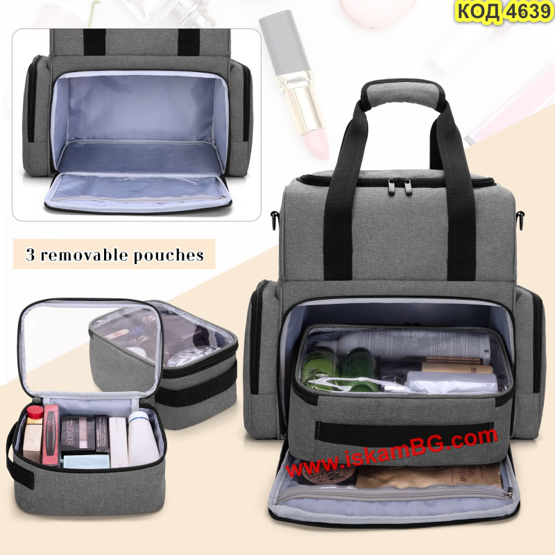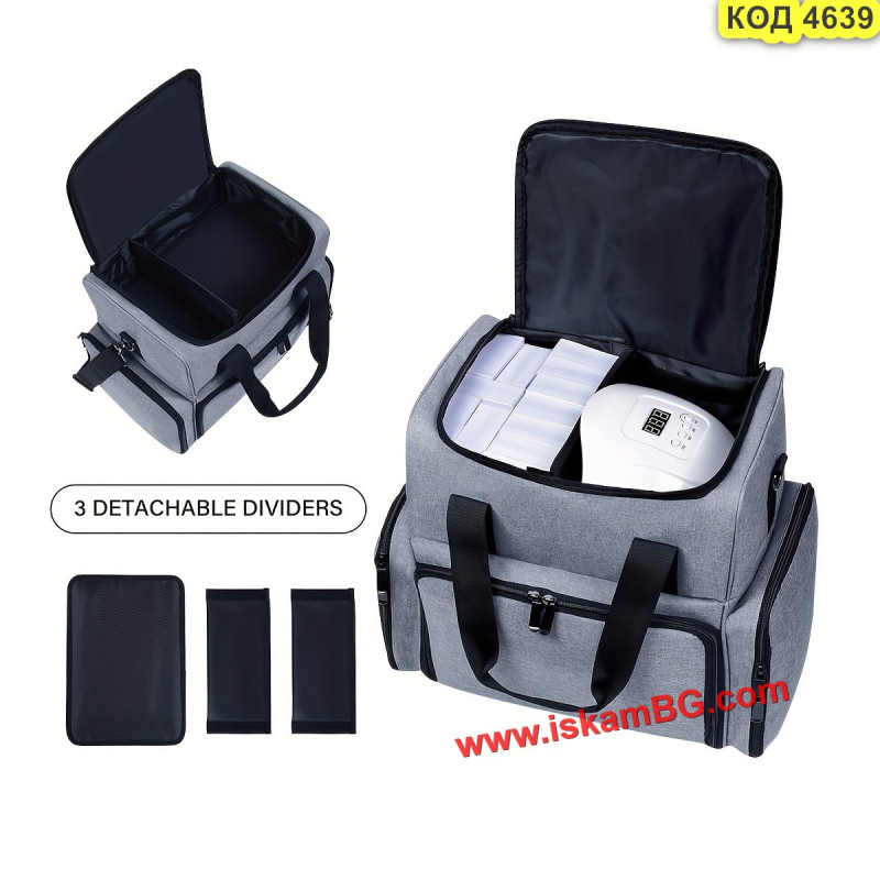Професионална чанта за лакове и лампа за нокти, Сив цвят