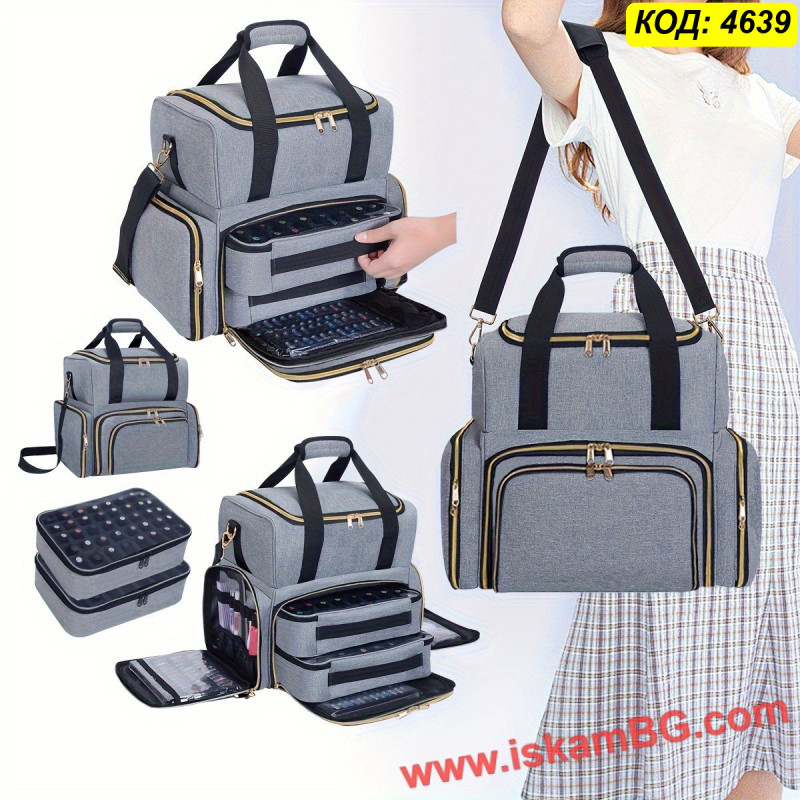 Подредете своята колекция за маникюр с тази стилна двуетажна чанта-органайзер. Горното отделение събира Вашата UV лампа и инструменти, а долното предпазва до 30 шишенца гел лак. Перфектна за професионалисти и за домашна употреба.
