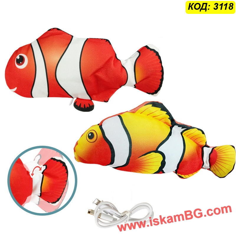 Мърдаща се играчка риба за котки - с презареждаща се от USB акумулаторна батерия