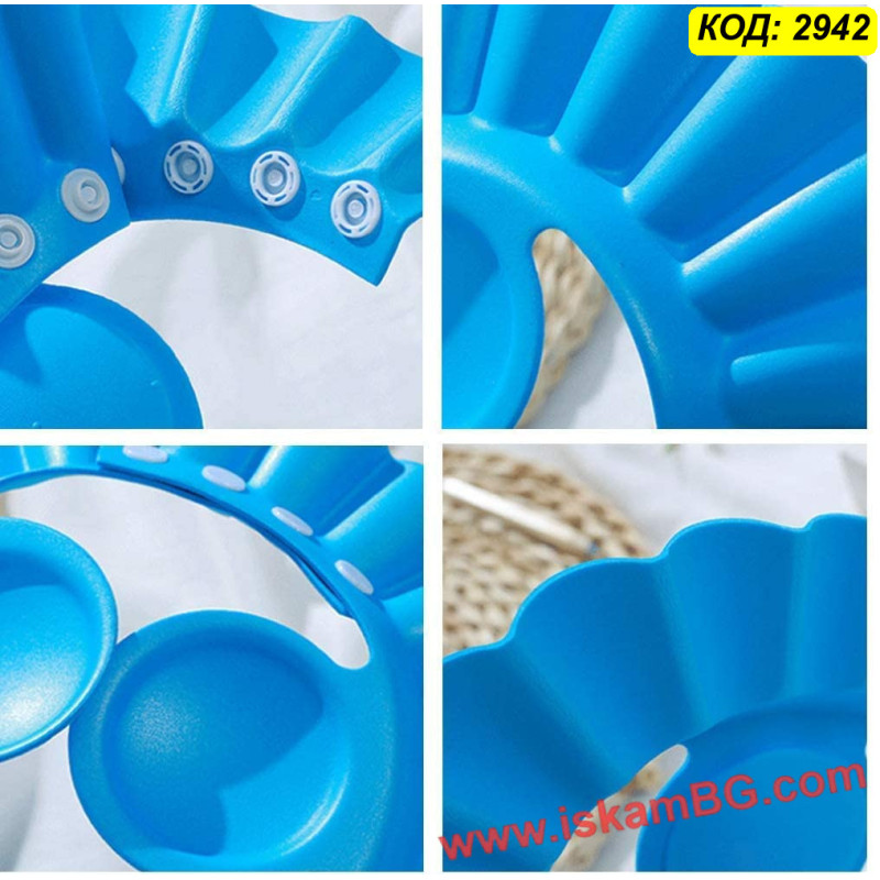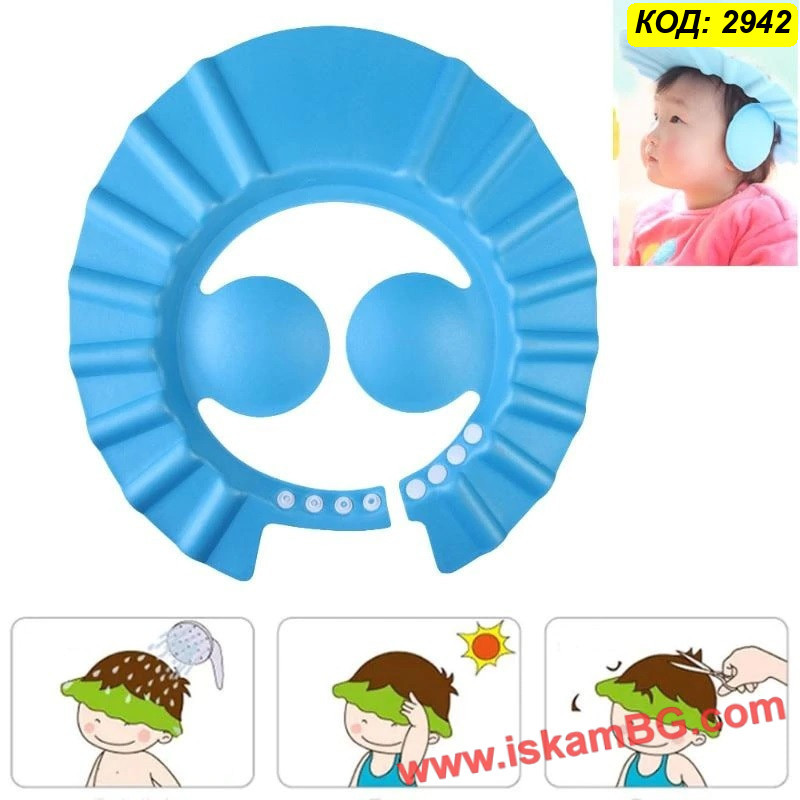 Детското къпане е безценно изживяване, независимо на каква възраст е бебето или детето. Някои мъници обожават играта с вода и сапунена пяна, други обаче са малко по-страхливи и предпазливи. С детската шапка, тип козирка ще си осигурите спокойно и безопасно къпане на своето малко човече, ще бъдете сигурни, че няма да попадне нито капка вода или сапун в неговите уши, нос или очи. Удобна и много практична, за многократна употреба и с възможност за регулиране на ширината в зависимост от размера на главата на детето.