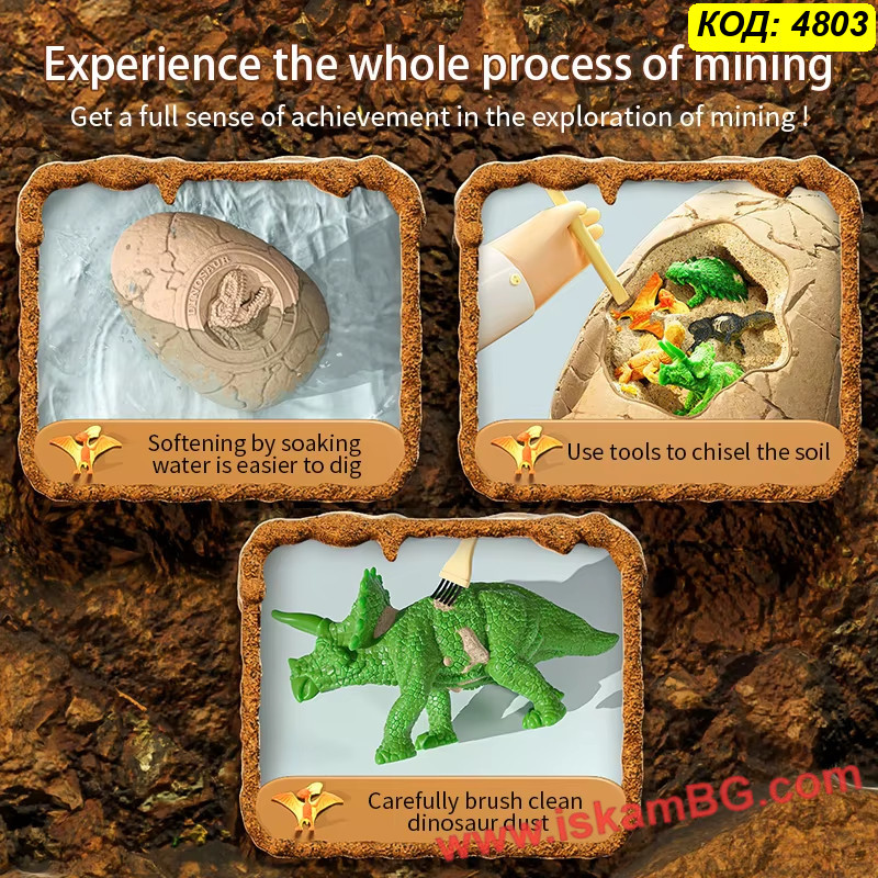 Този детски научен комплект е идеален за развитие на фината моторика и за стимулиране на любопитството към природните науки и историята. След като всички фосили бъдат открити, те могат да бъдат почистени с четката и да послужат като колекция от мини-динозавърски фигури за по-нататъшна игра. Независимо дали ще изберете Средния или Големия размер, вие подарявате на детето си часове на увлекателно, практическо обучение, далеч от екрана. Това е перфектният подарък за всеки малък изследовател и фен на динозаврите!