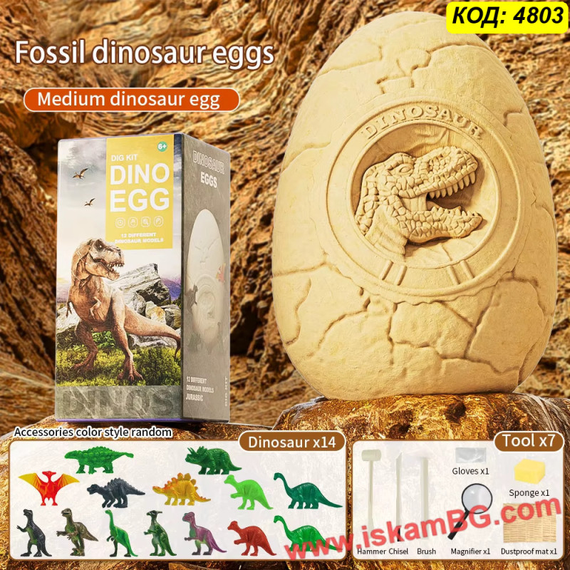 Подарете на детето си вълнуващо пътешествие в праисторическия свят с този голям комплект за разкопки на динозавърски яйца. Кутията съдържа 12 глинени яйца, всяко от които крие уникален динозавър, очакващ да бъде открит. Идеална STEM играчка, която развива търпението, фината моторика и любовта към науката.