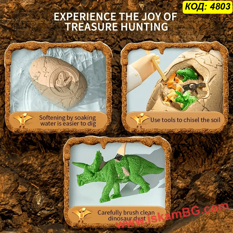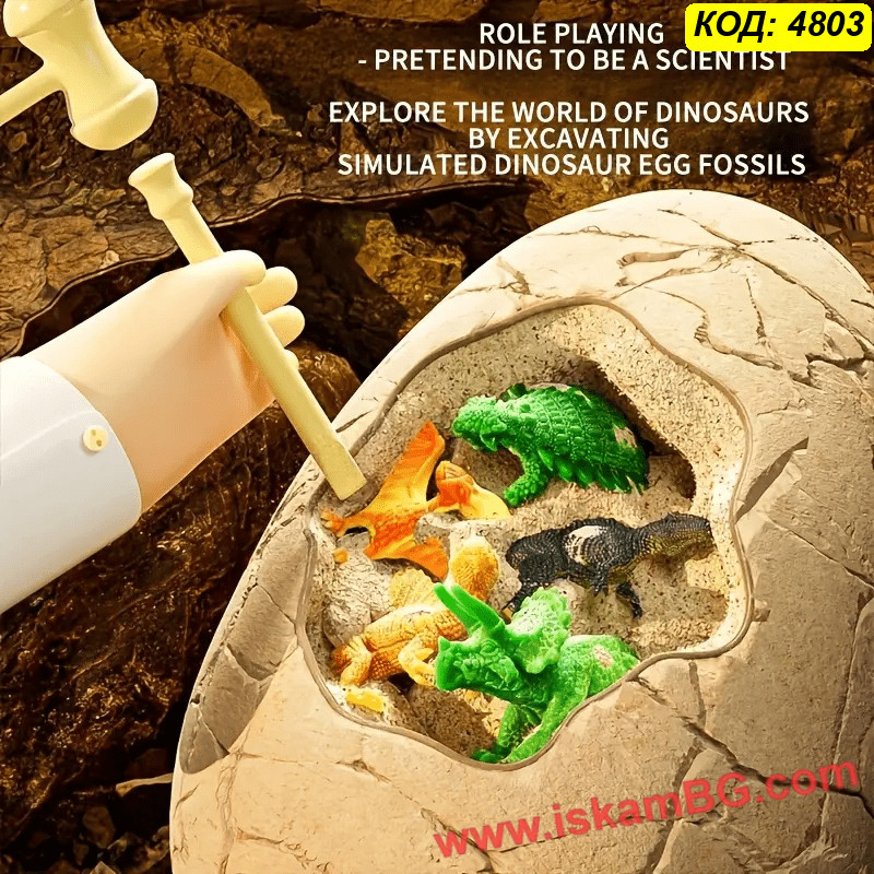 Открийте мистериите на Юрския период с този завладяващ комплект за разкопки на динозавърски фосили! Детето ви влиза в ролята на истински археолог, като се научава на търпение, концентрация и прецизност. Процесът на бавно и внимателно изкопаване на фигурите от твърдото гипсово яйце е изключително удовлетворяващ и образователен.