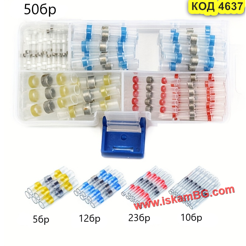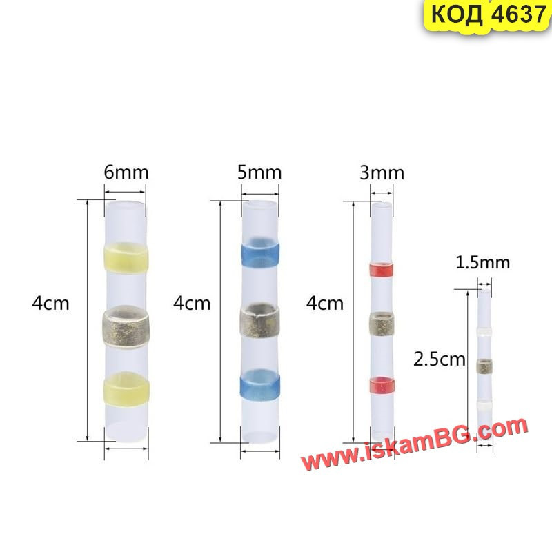Комплект термосвиваеми конектори с припой (тинол) - 50 броя