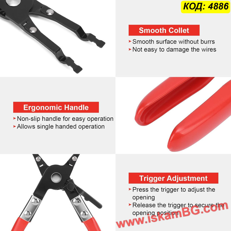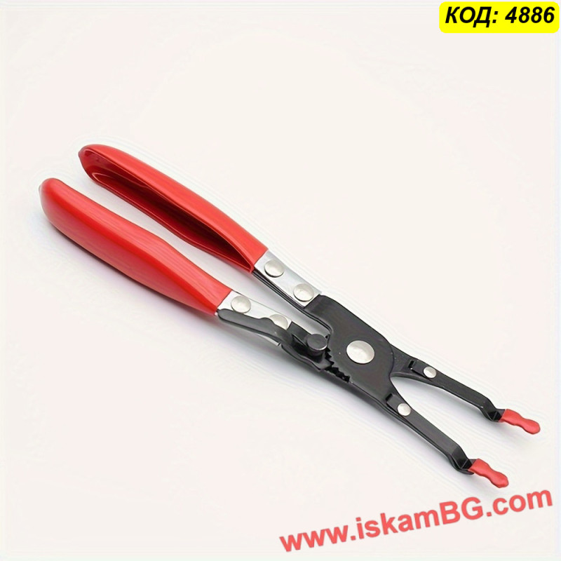 Дългата и извита форма на клещите позволява достъп до труднодостъпни места, а червените гумирани дръжки осигуряват комфорт и изолация. Независимо дали поправяте автоаларма, аудио система или домашна електроника, този инструмент ще ви спести време и нерви.