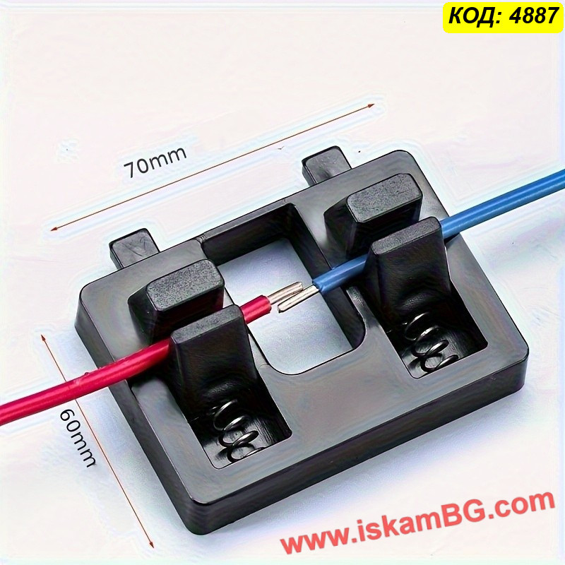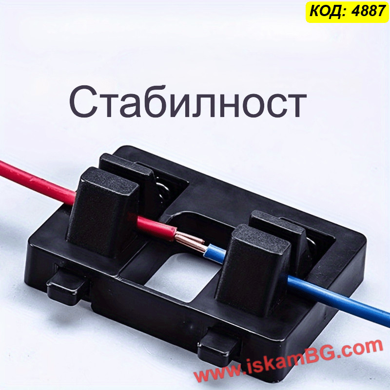За разлика от металните щипки, пластмасовите челюсти на тази стойка не нараняват меката изолация на кабелите. Компактният размер (70х60 мм) я прави идеална за всяка кутия с инструменти или претъпкана работна маса. Незаменим помощник при удължаване на проводници, ремонт на LED ленти или фина електроника.