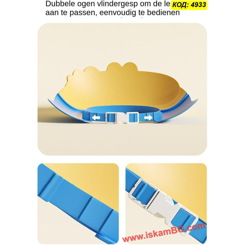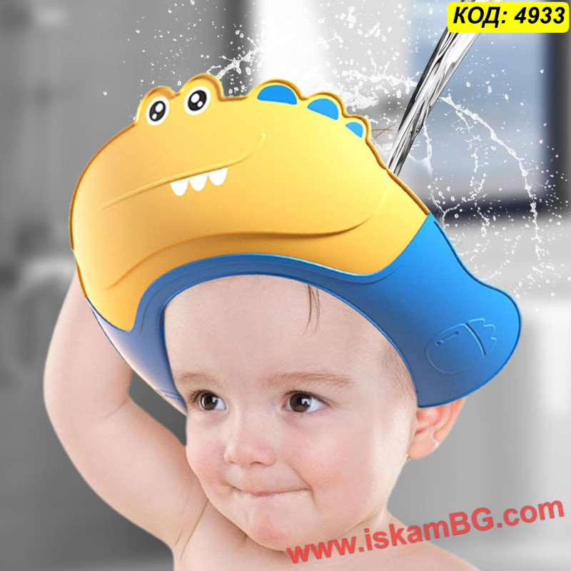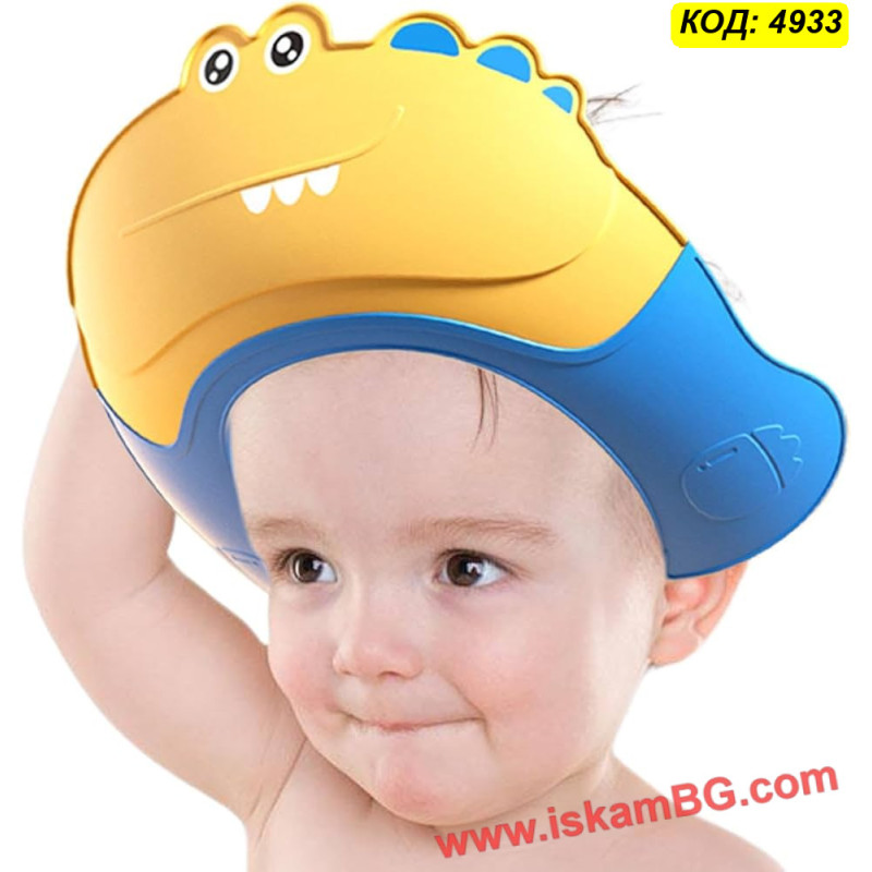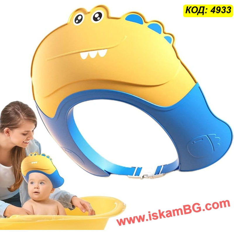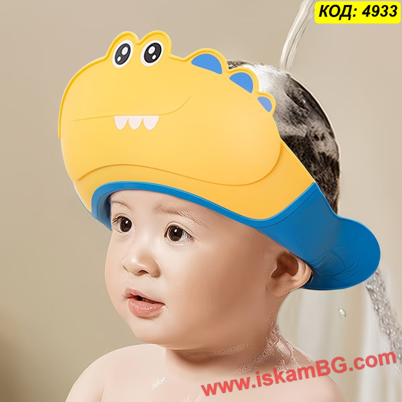 Практична козирка за баня, която ефективно предпазва очите и ушите на детето от вода и сапун. Дизайнът с весел крокодил превръща миенето на косата в забавна игра без страх.    Виж пълното описание