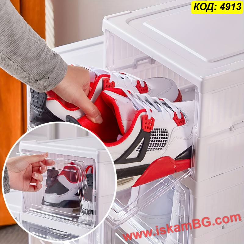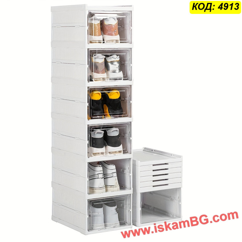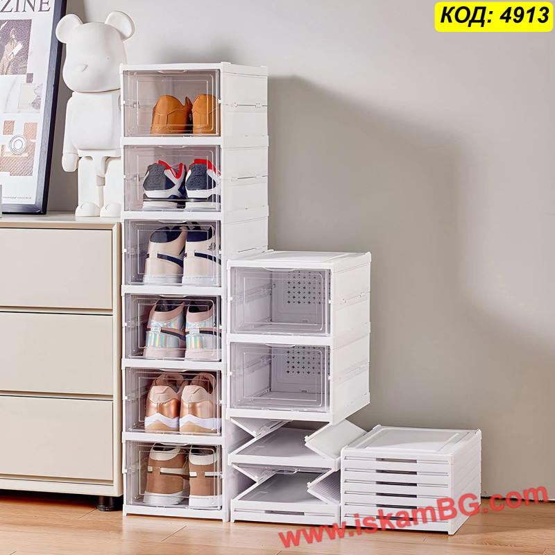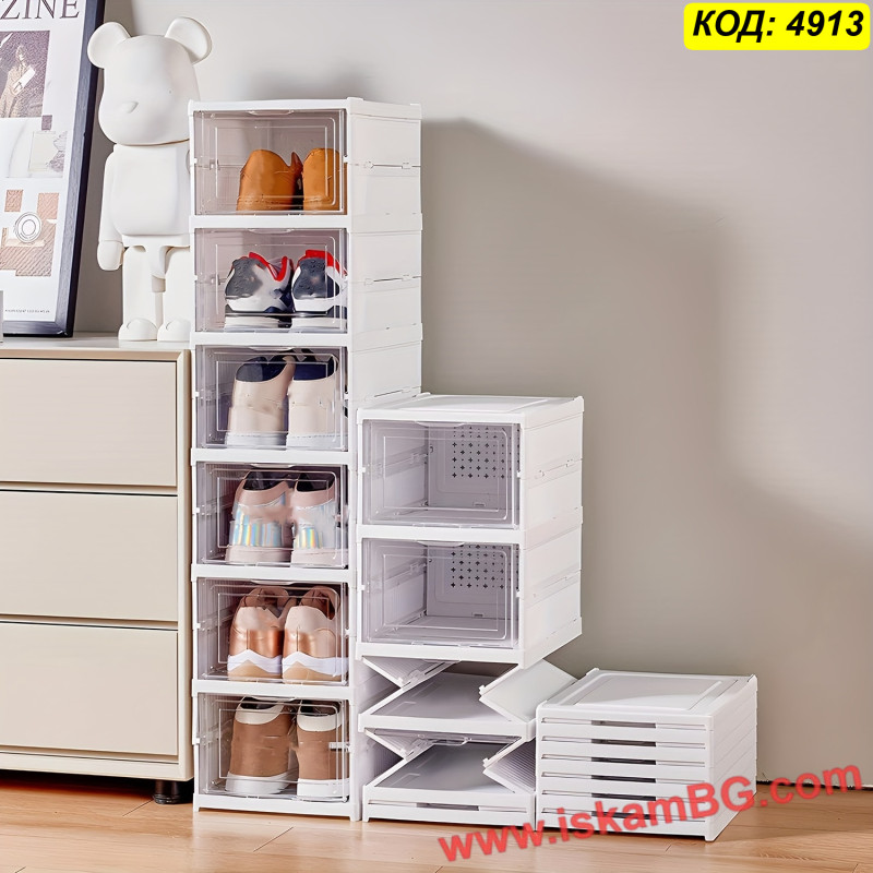 Комплект сгъваеми пластмасови кутии за обувки на 6 нива – практично и стабилно решение