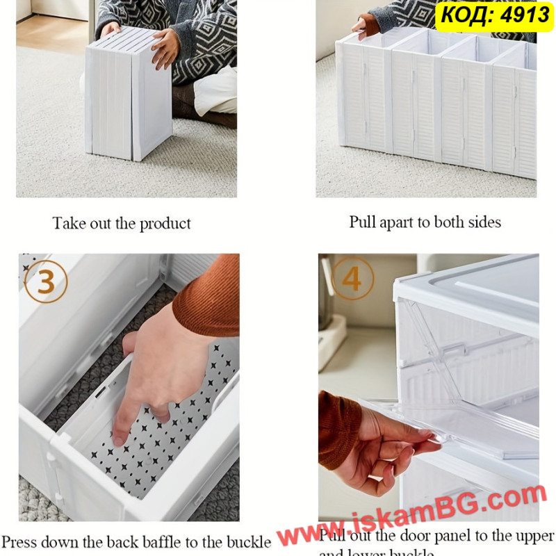 Сгъваемите кутии за обувки се разгъват бързо и без инструменти. Достатъчно е да повдигнете конструкцията и да фиксирате страните. При нужда от преместване или съхранение, комплектът се сгъва компактно, което го прави изключително удобен за транспорт или сезонна употреба.