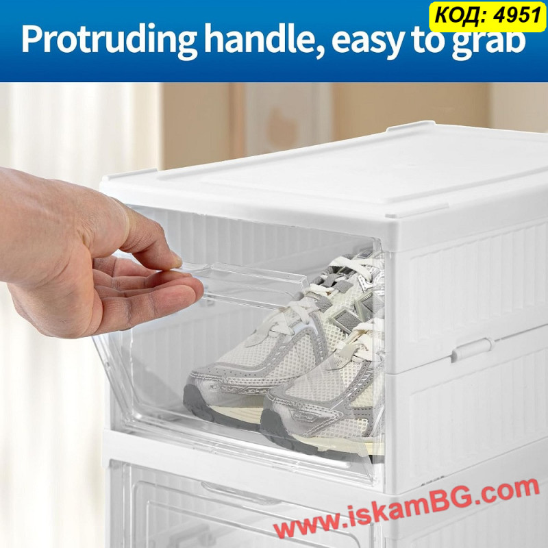 Ако търсите стабилна сгъваема пластмасова кутия за обувки, която може да се подрежда и да осигурява защита и добра вентилация, този модел е практично и надеждно решение.