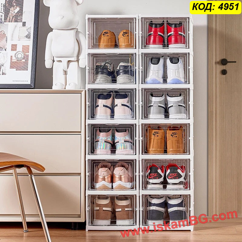 1 бр. единична пластмасова кутия за обувки - сгъваема