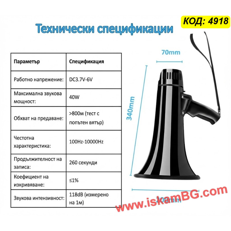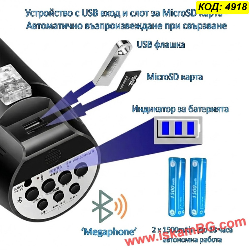 Този модел е не просто мегафон, а цялостна мобилна озвучителна система с кристален звук и мощна проекция.