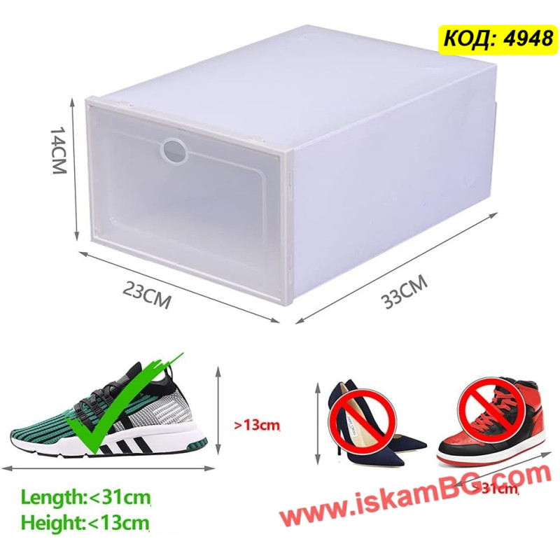 Прозрачна пластмасова кутия за обувки