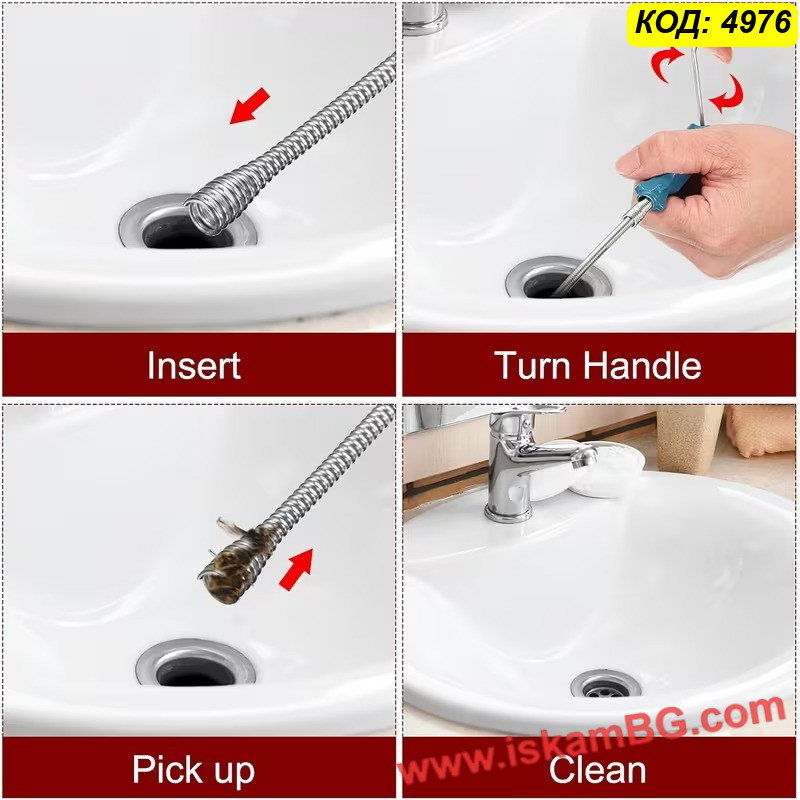 Изработен от метал / стомана, този уред за отпушване е здрав и устойчив при редовна употреба. Удобната дръжка за навиване позволява по-добър контрол по време на работа и прави използването по-лесно дори в домашни условия. Конструкцията е съобразена така, че да не уврежда тръбите и връзките, което е важно при по-често използване.