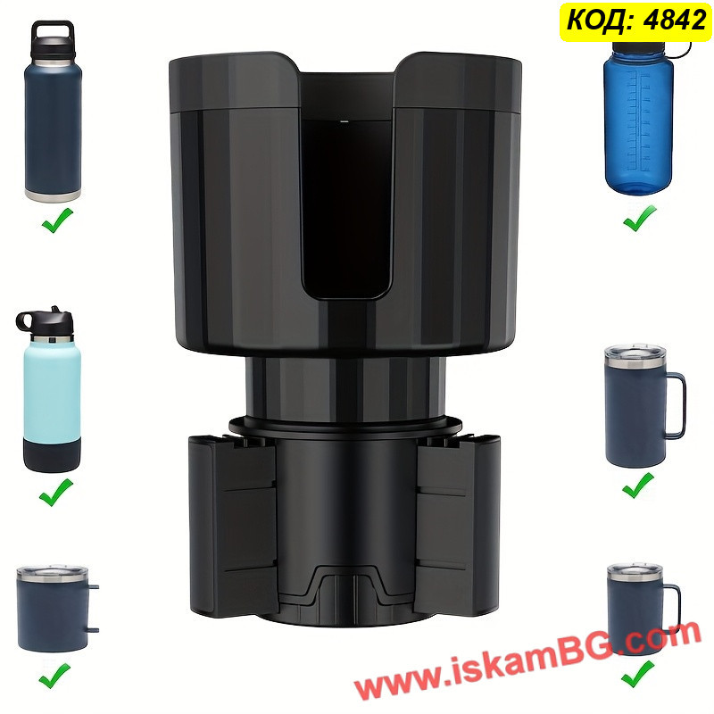 Превърнете стандартната конзола на автомобила си в удобен органайзер, способен да побере любимата ви голяма напитка. Този адаптер за чаша за кола е проектиран с мисъл за съвременния шофьор, който използва термо чаши или бутилки за многократна употреба, които често не влизат в заводските отвори.