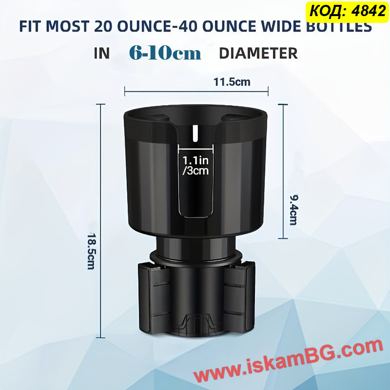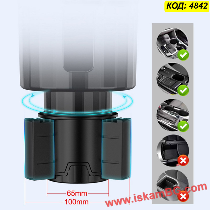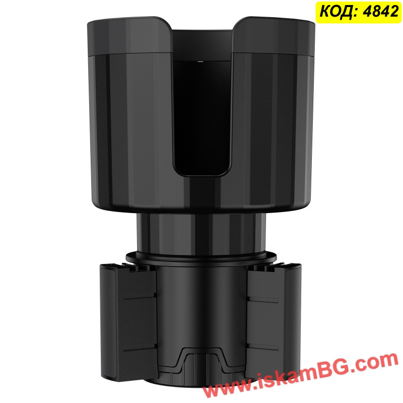 Универсална регулируема поставка за чаша за кола (65-100мм) – За големи бутилки и термоси, С ПОСТАВКА ЗА ТЕЛЕФОН