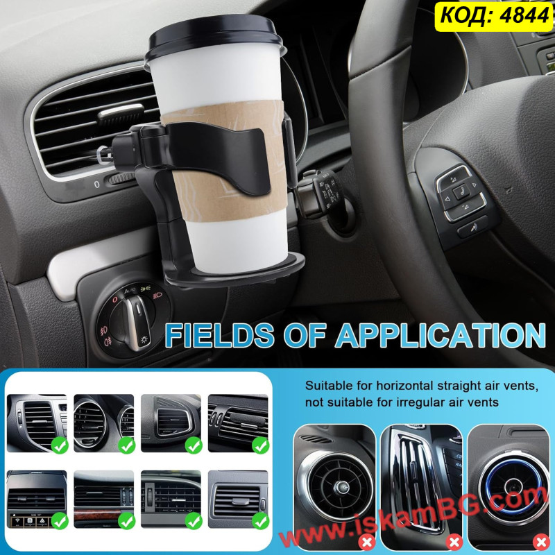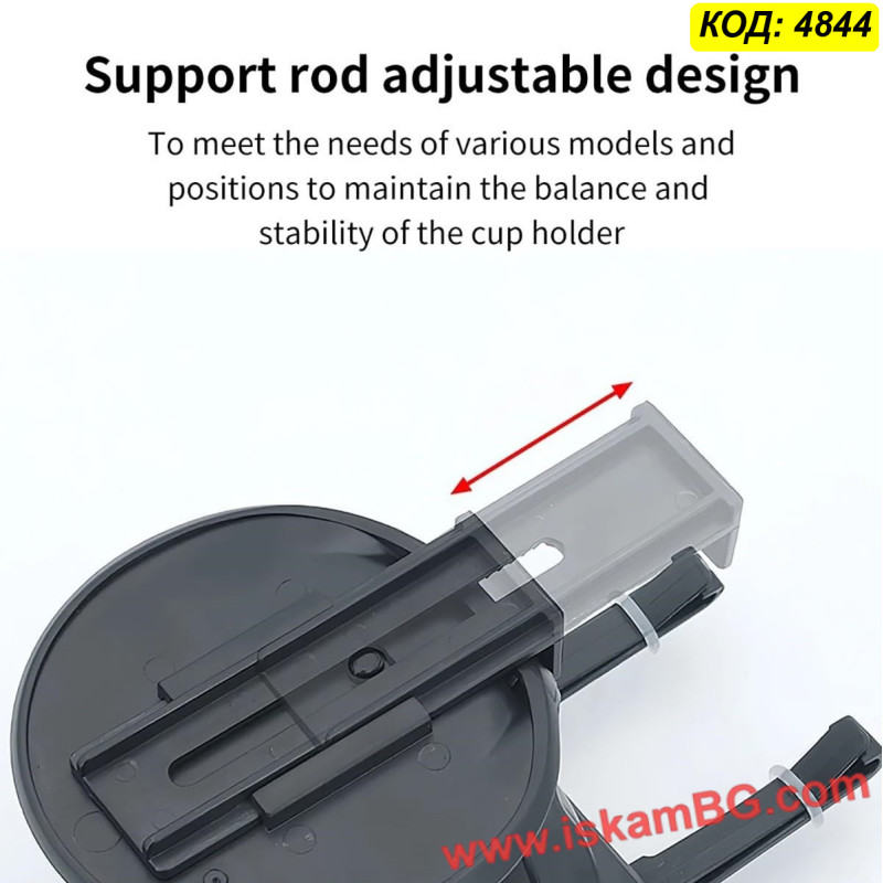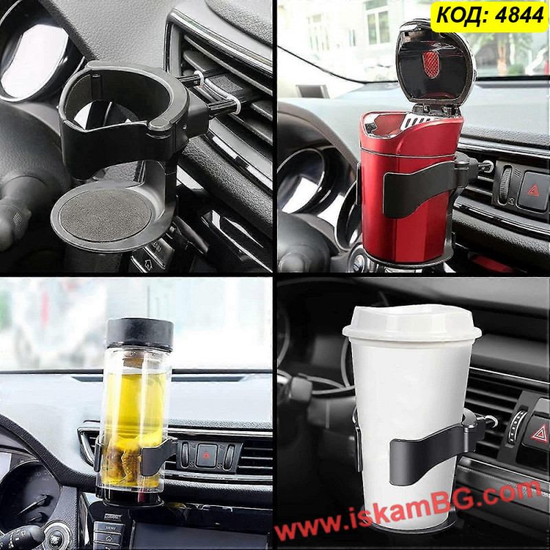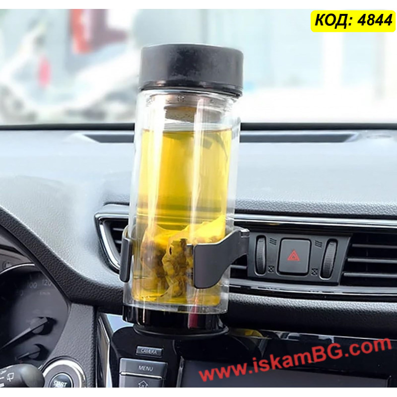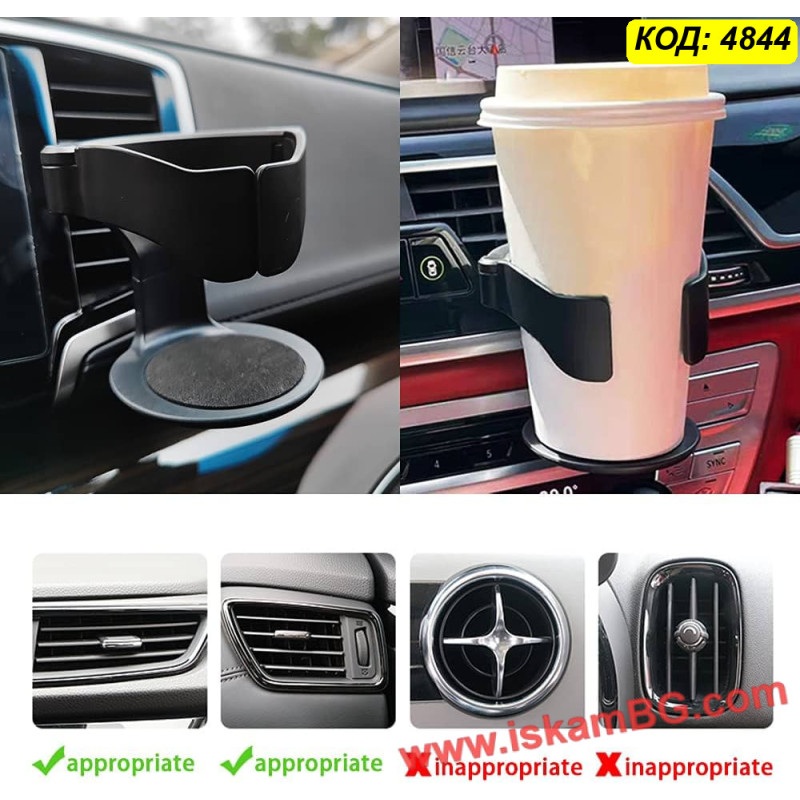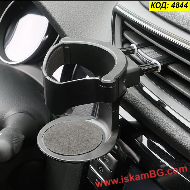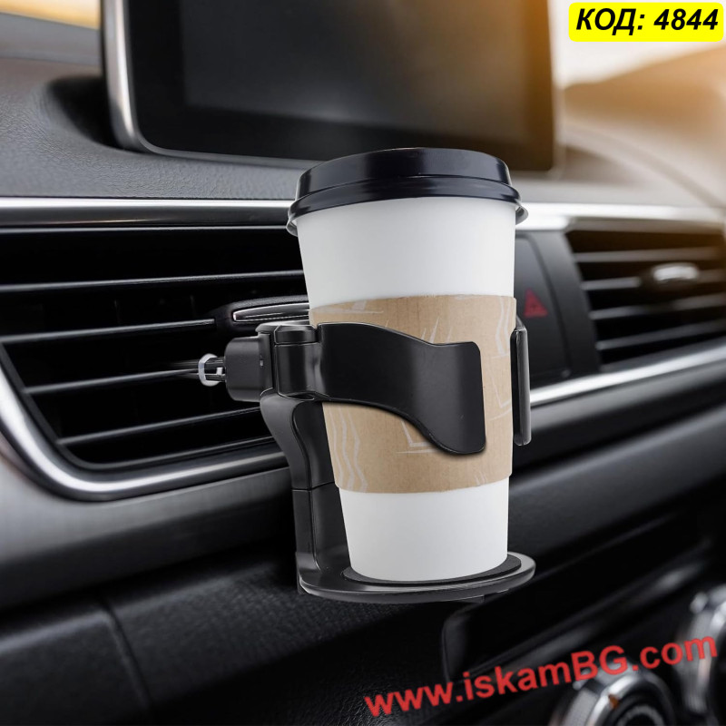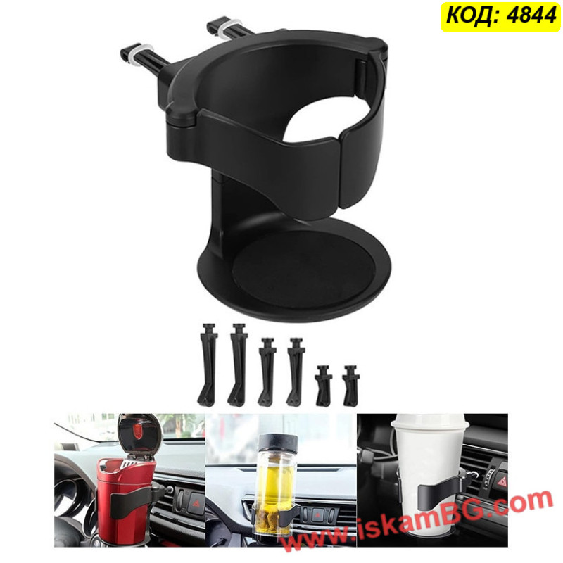Голямото предимство на този модел е термо ефектът. Когато климатикът работи, въздушната струя обдухва директно напитката, като я поддържа ледено студена в жегите или приятна топла през зимата. Конструкцията включва регулируема предна скоба, която се адаптира към размера на чашата (кенчета, картонени чаши за кафе, малки бутилки), и дъно с мека подложка, която предотвратява плъзгане, разливане и дразнещ шум от вибрации. Изчистеният черен дизайн пасва на интериора на всеки автомобил.