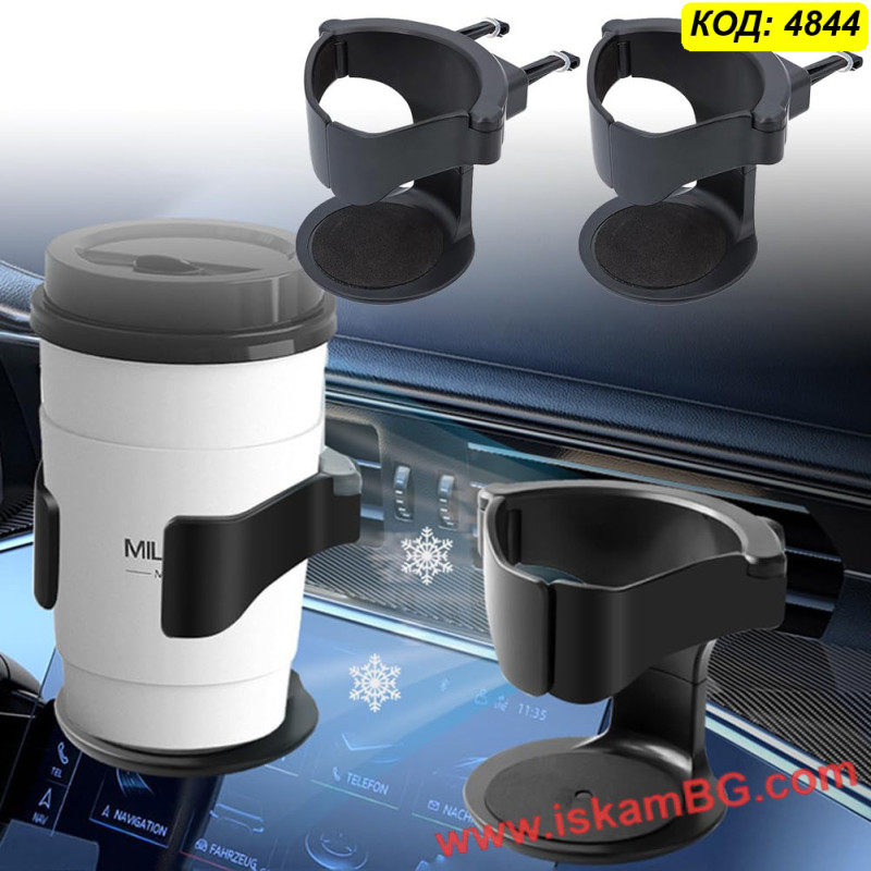 Този интелигентен адаптер превръща стандартния държач за чаша във вашия автомобил в мултифункционален органайзер с две гнезда. Благодарение на въртящата се на 360 градуса конструкция и разтягащите се челюсти на горната поставка, вече можете да поберете едновременно кафе, голяма бутилка вода, купа с храна или дори таблет/телефон, спестявайки ценно място в купето.