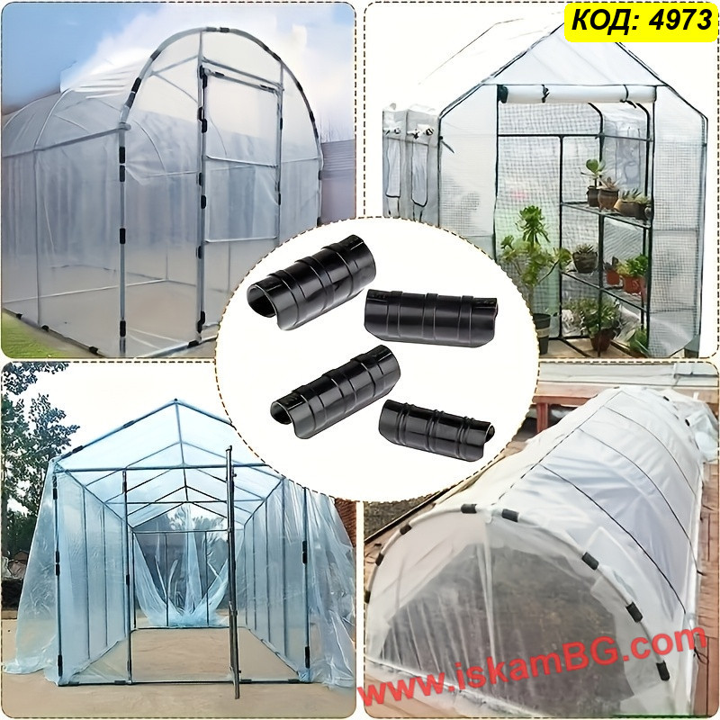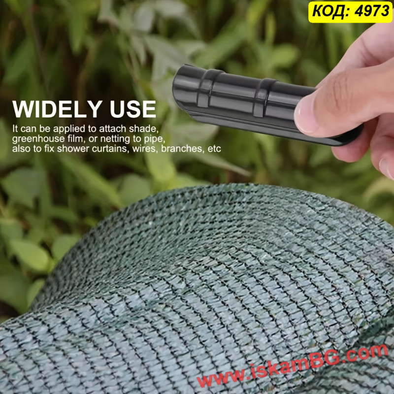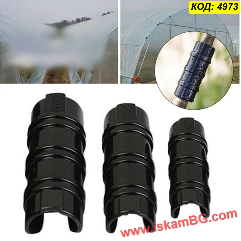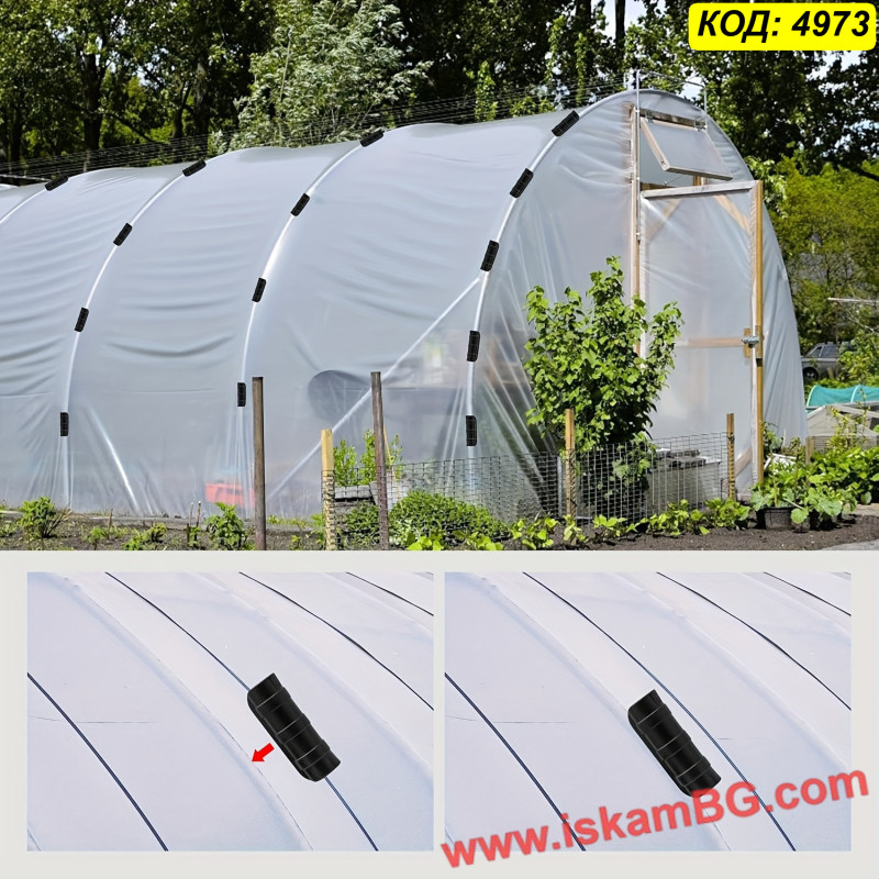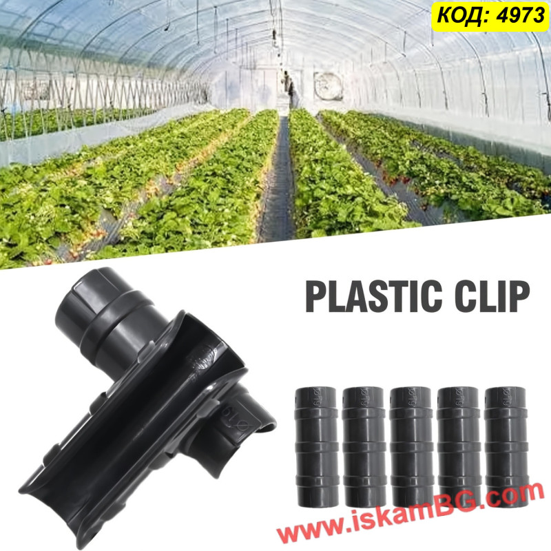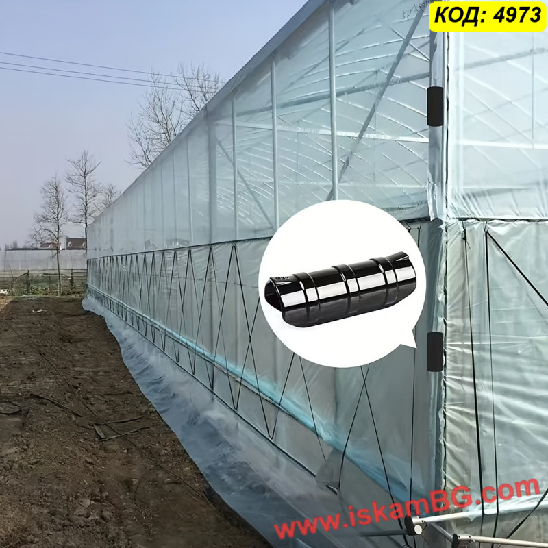 Материалът има малка еластичност, което улеснява поставянето върху тръбата и помага за по-доброто притискане на найлона. Това е практично решение както при подмяна на стари или счупени скоби, така и при изграждане на нова оранжерия.