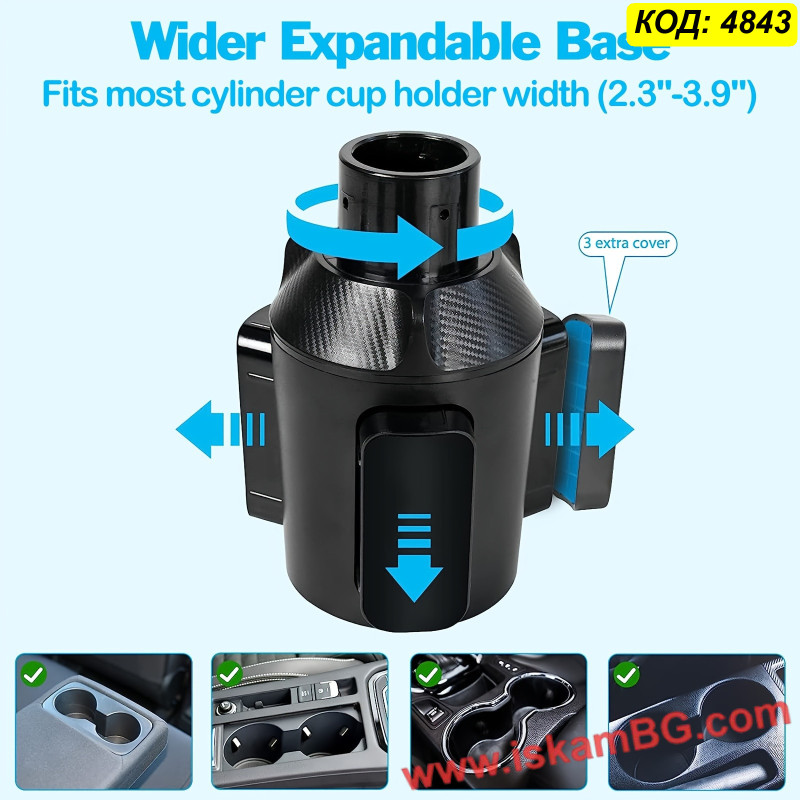 Тип монтаж: В поставка за чаша (Cup Holder Mount) с разширяваща се основа.