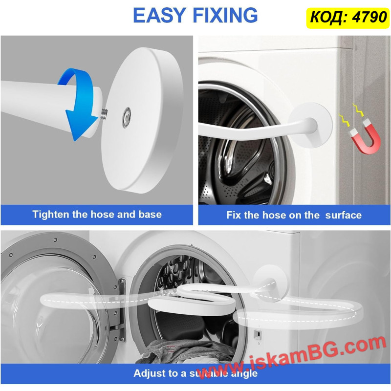 Силен магнит: Закрепва се здраво за корпуса на пералнята, без да се хлъзга или пада.