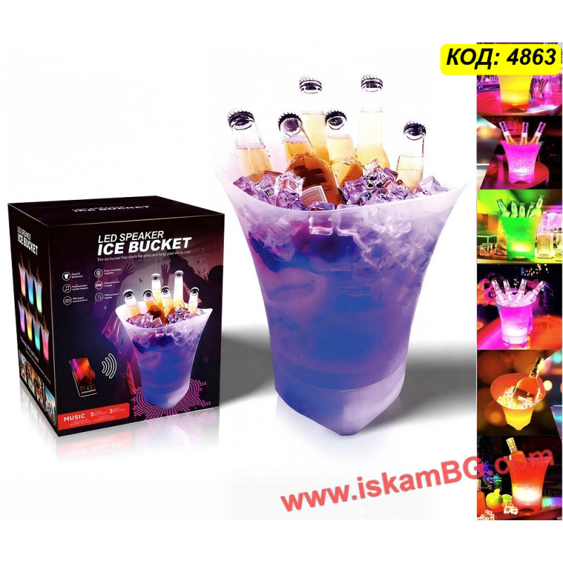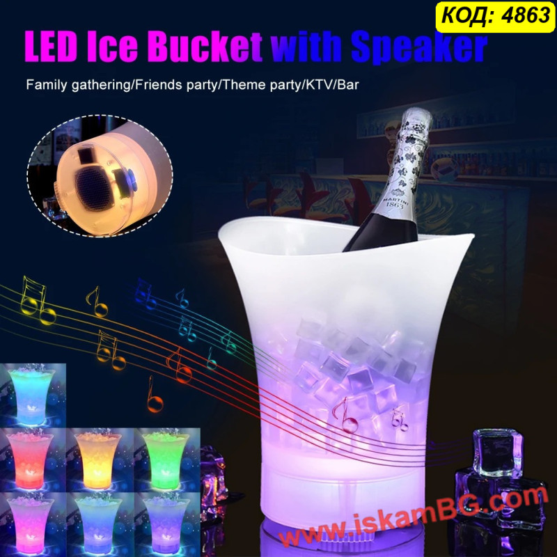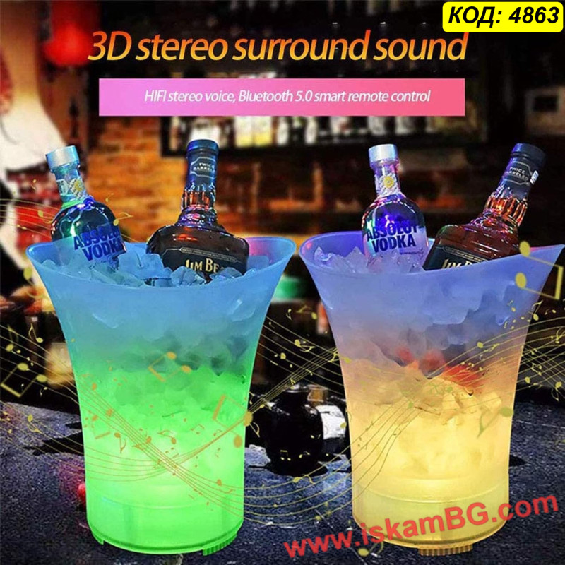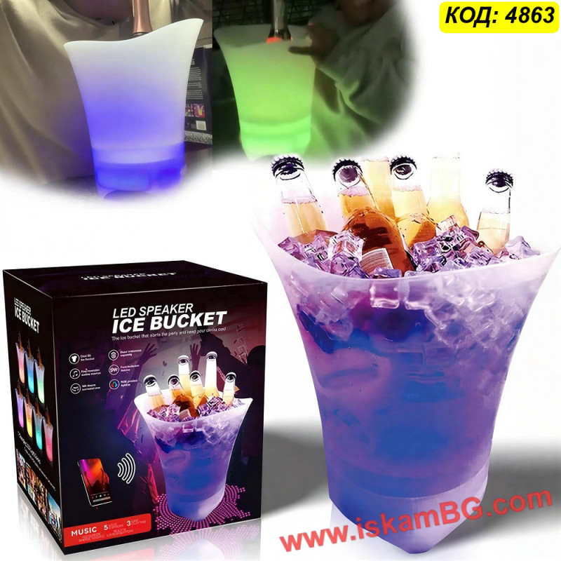 7-литрова RGB Ледарка с Bluetooth 5.0 Високоговорител - Светеща Кофа за Лед и Охладител за Вино и Шампанско