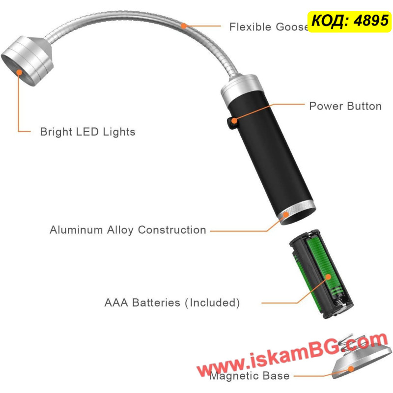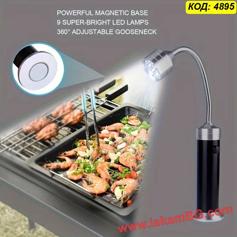 1 бр. Магнитна LED лампа за барбекю (без батерии).
