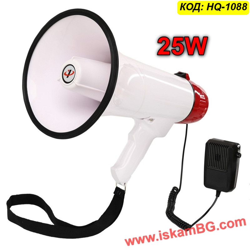 Този професионален рупорен мегафон 25W е създаден за ситуации, в които е необходим максимално силен, ясен и далекобоен звук. Благодарение на високата си мощност и ниското ниво на изкривяване (под 1%), гласът се чува отчетливо дори в шумна или открита среда.