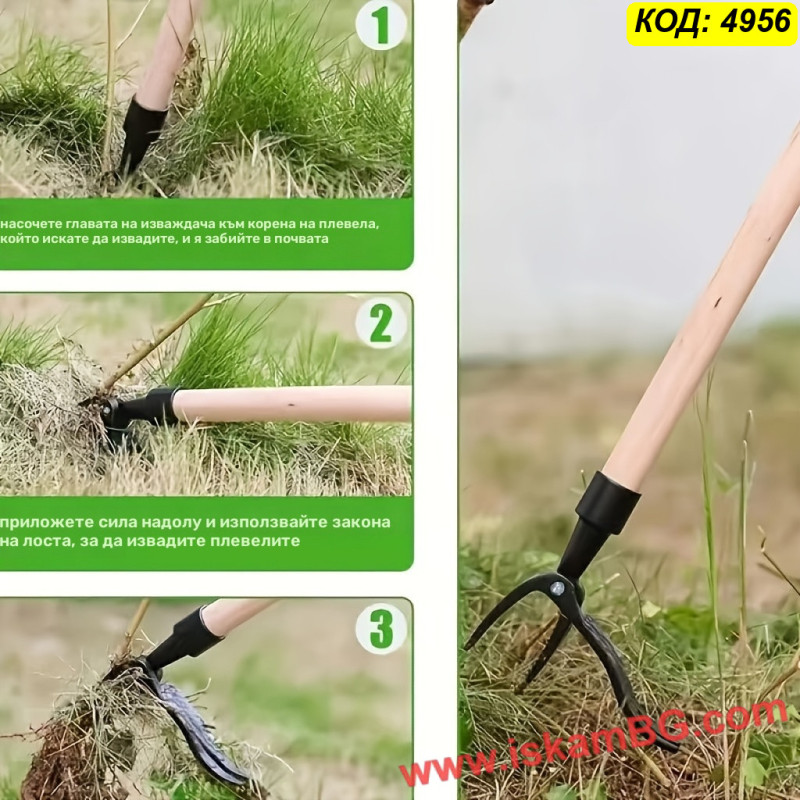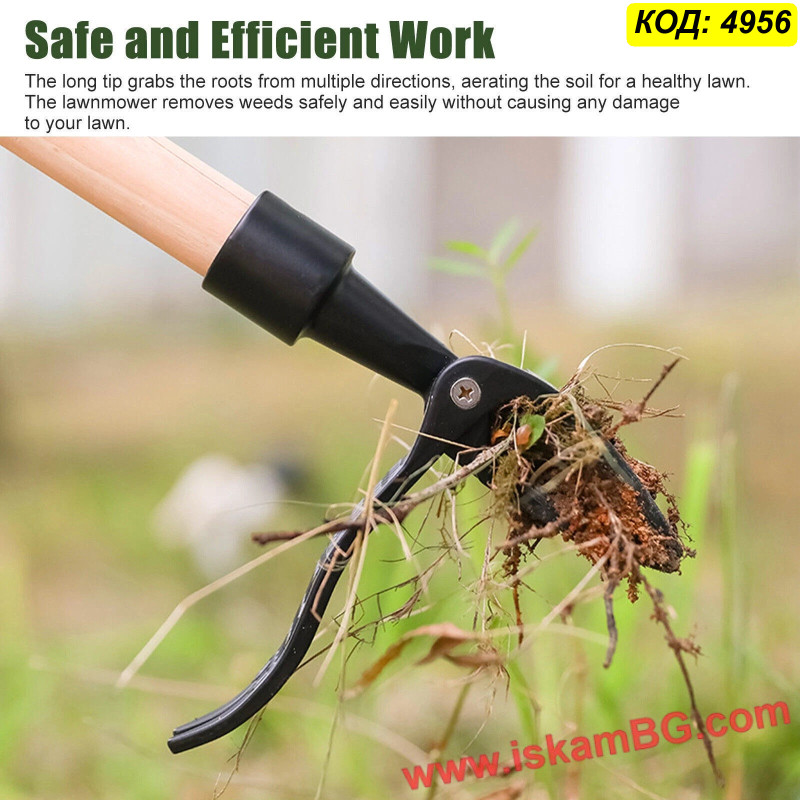 Уред за изкореняване на плевели е практичен градински инструмент за лесно премахване на плевели заедно с корена. Подходящ е за вадене на глухарчета, различни бурени и нежелана трева, без да се налага да дърпате растенията на ръка или да се навеждате излишно.